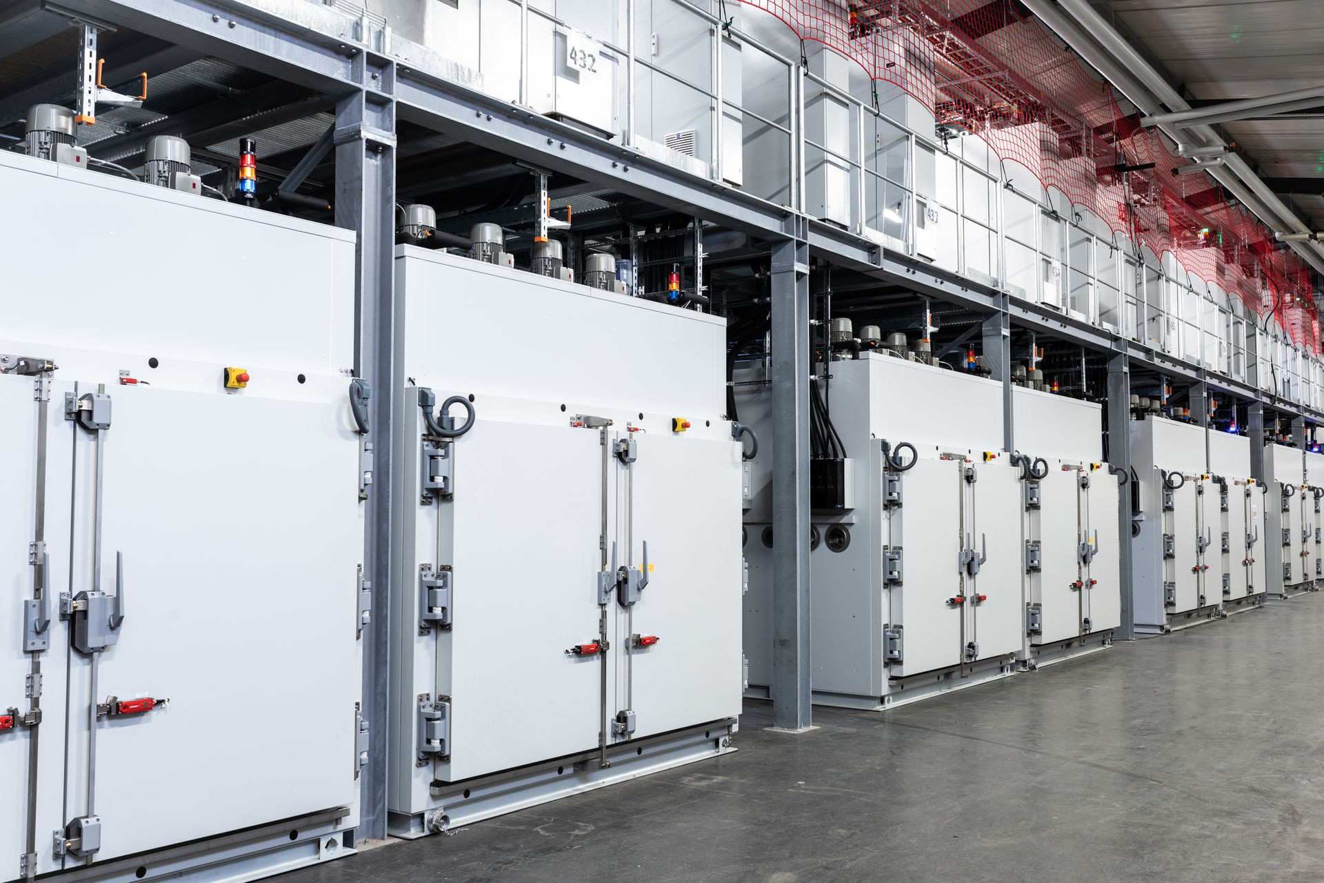 Mit dem Prüflabor Riemke II haben wir konsequent auf hohe Leistungsdichte und energieeffiziente Technologien gesetzt. Die architektonische Planung nutzt die vorhandene Hallenhöhe gezielt aus: Durch den Einbau einer zweiten Ebene konnte die Anzahl der Prüfkanäle auf gleicher Grundfläche deutlich erhöht werden. So lassen sich hohe Leistungsanforderungen aktueller Batteriesysteme erfüllen.